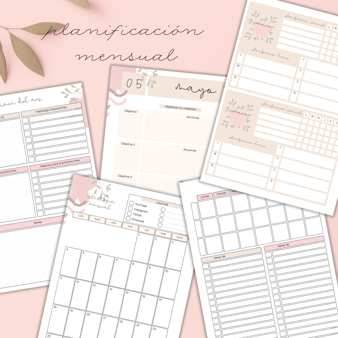- Planificación diaria: espacio para anotar publicaciones, plataformas y tareas.